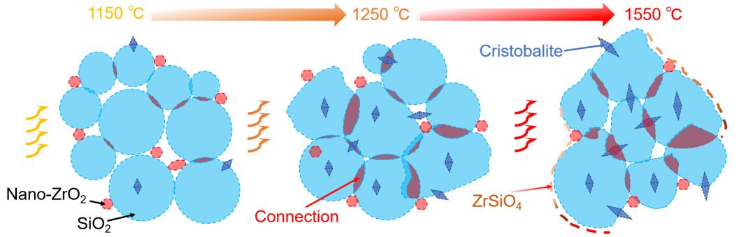 图5:不同最终烧结温度的SiO2基陶瓷示意图