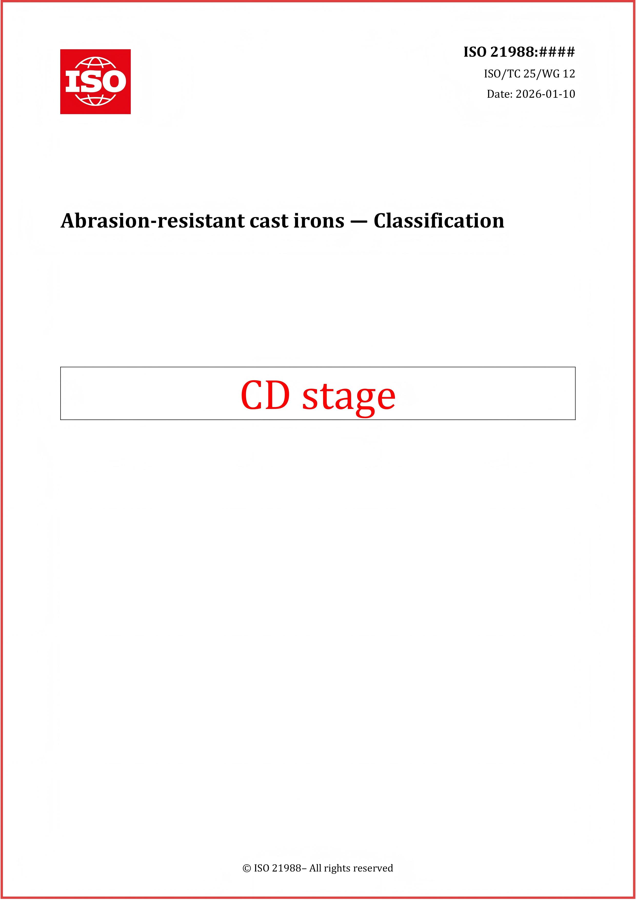 2025年,我国在铸铁和生铁领域取得重要进展。国际标准化组织(ISO)批准由我国主导的两项国际标准项目立项,分别为ISO/AWI 21988 Abrasion-resistant cast irons — Classification(主导修订)和ISO/AWI 25956(主导制定)Test method for penetration strength of cast iron。这是继2019年之后再次在ISO/TC25代表中国主导国际标准项目,实现了深度参与国际标准化工作。