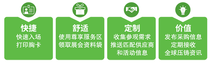 2020年中国压铸展和中国有色展组团参观再次起航,为您的观展之旅提供多重便捷福利!2019年现场共吸引了106个专业买家团,共638位来自全球电子、通讯、医疗、五金等行业的压铸产品终端用户。期待您的共同参与!