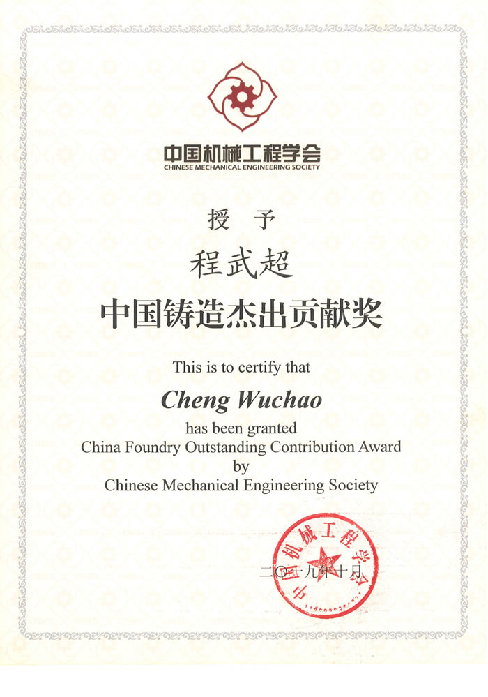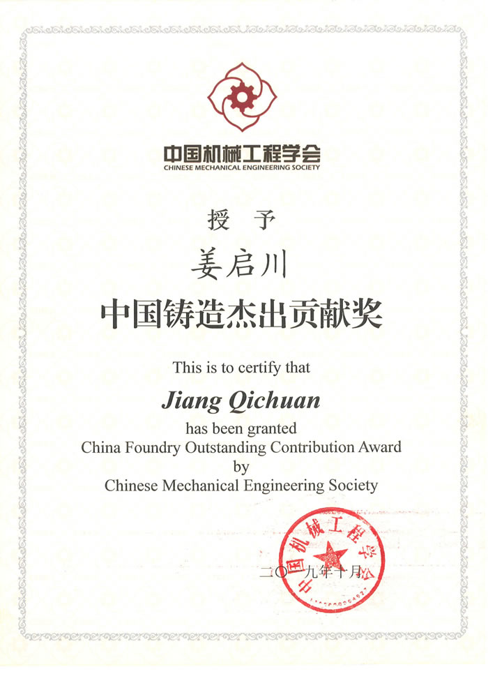 第九届中国机械工程学会“中国铸造杰出贡献奖” 获奖人